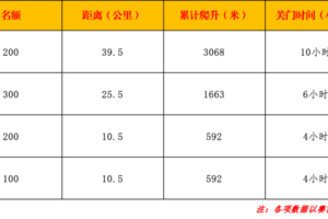 注:以最终公布的数据为准;如遇特殊情况和突发事件或暴风,雷电,暴雨等恶劣天气时,组委会有权决定熔断比赛,参赛者须服从指挥。