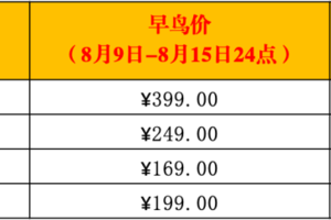 报名时间为2023年8月9日到9月25日24点,其中早鸟时间截止到8月15日24点,额满提前截止,各组别报名费用说明如下: