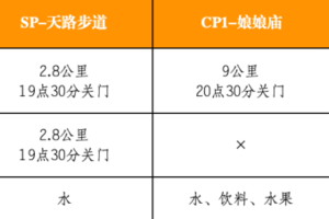 4、补给站CP1-娘娘庙于21点关闭,CP2-白马庙将于23点关闭,关闭后将不提供服务。