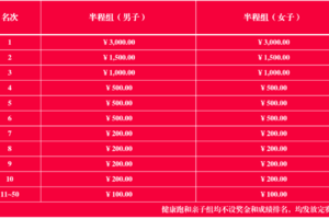亲子组(5公里):一大一小,关门时间1小时,500组家庭。