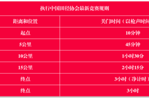 为了保证参赛运动员比赛安全、顺利,比赛期间比赛路线各段设关门时间,限时段对交通封闭。起跑至关门时间到后,各路段恢复社会交通。参赛者在规定的关门时间内未跑完对应距离的参赛者须立即停止比赛,退出赛道,以免发生危险。退出比赛者可乘坐组委会提供的摆渡车到相应项目的终点。